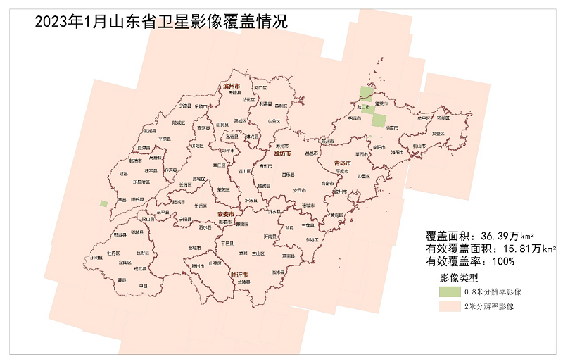 2023年1月份,共获取遥感影像36.39万平方千米,有效覆盖面积15.81万平方千米,有效覆盖率100%(全省陆域面积15.81万平方千米)。其中: