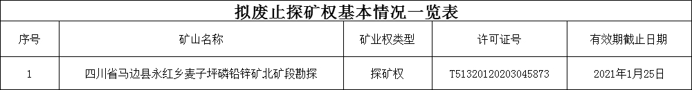 关于拟废止四川省马边县永红乡麦子坪磷铅锌北矿段勘探探矿权的公告