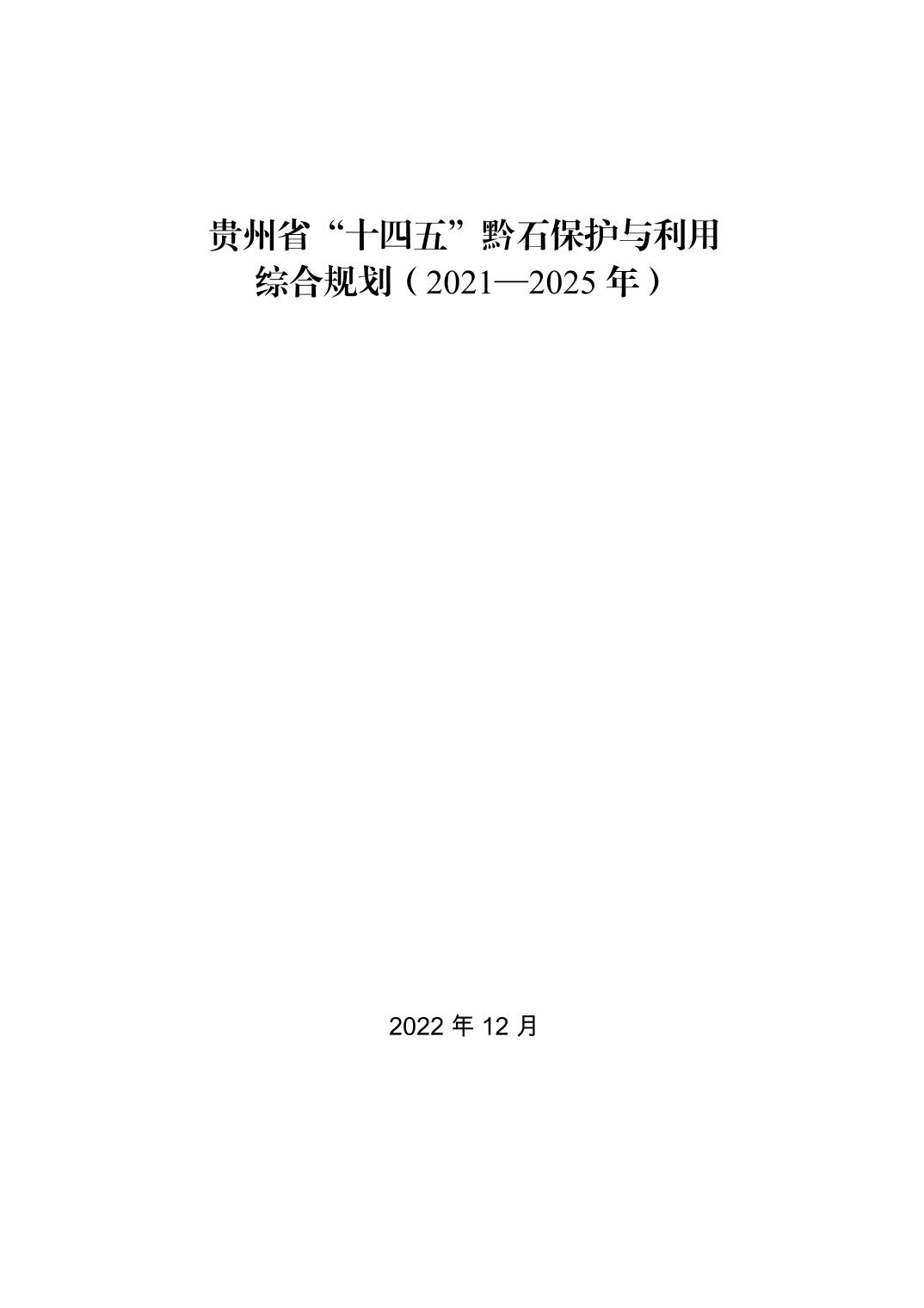 贵州省“十四五”黔石保护与利用综合规划(2021-2025年)