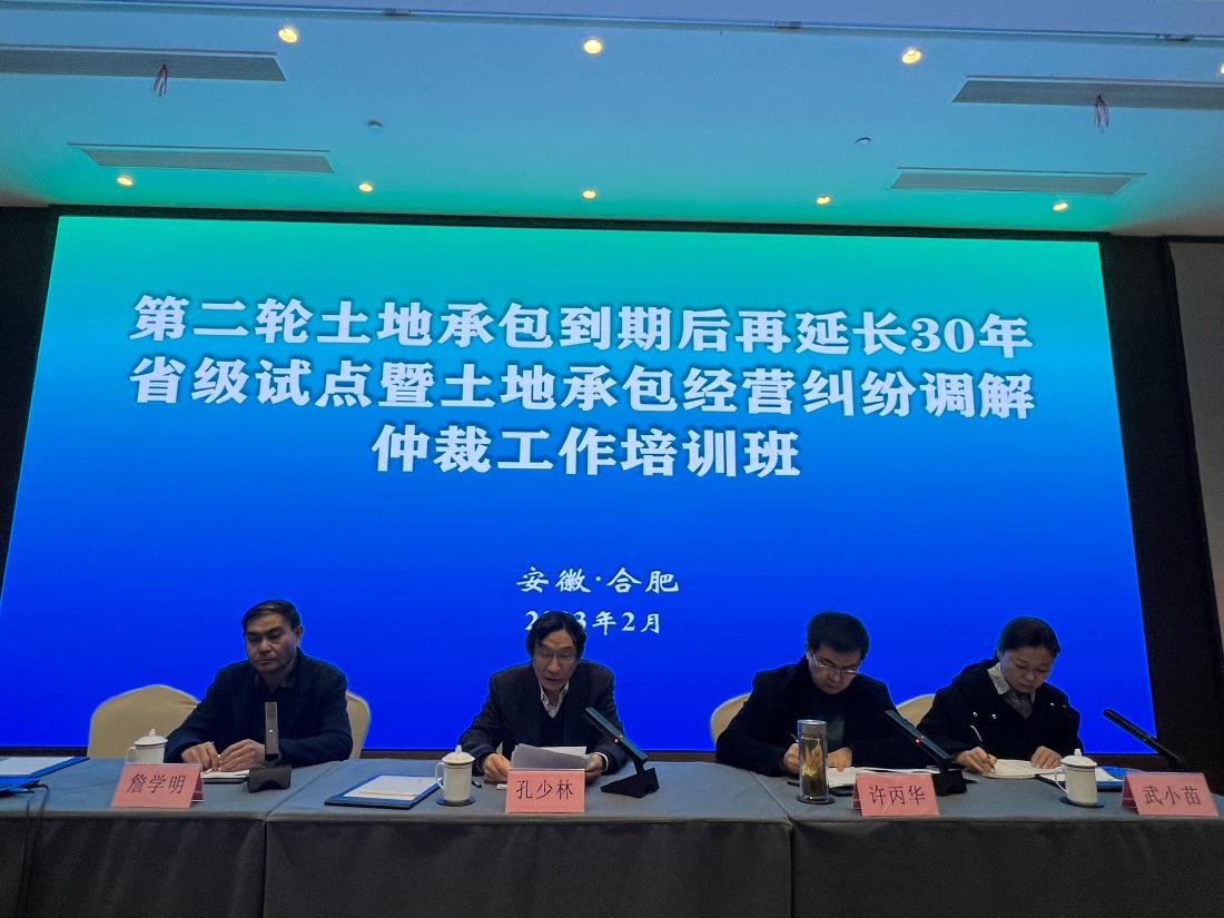 为进一步加强农村土地承包管理,扎实开展第二轮土地承包到期后再延长三十年试点工作,2023年2月15日-17日,全省第二轮土地承包到期后再延长30年省级试点暨土地承包经营纠纷调解仲裁工作培训班在合肥举办,省农业农村厅党组成员孔少林同志出席并讲话。