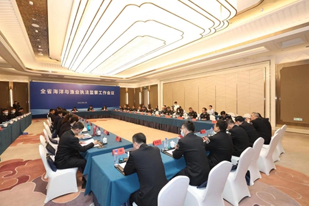 会议强调,全省海洋与渔业执法工作要置于“海洋强省”“农业强省”等大局中去考量、去谋划、去推进,以加快推进海洋与渔业执法监察体系和治理能力现代化建设为主线,以维护渔业生产秩序、守护渔区振兴发展、保护海洋生态环境、卫护海上安全稳定“四护”为重点,不断提高执法的法治化、标准化、智能化、专业化“四化”水平,更加主动融入新发展格局。要聚焦渔业绿色发展,在海洋伏季休渔和黄河流域禁渔上狠下功夫;要聚焦维护国家大局,在涉渔综合治理和“三无”船舶整治上狠下功夫;要聚焦守牢安全底线,在渔船智慧管控和安全生产监管上狠下功夫;要聚焦生态文明建设,在海域海岛执法和海洋环保执法上狠下功夫;要聚焦海上共建共治,在联合巡航执法和区域一体联动上狠下功夫;要聚焦加强能力建设,在执法机制完善和队伍素质提升上狠下功夫,为海洋与渔业高质量发展保驾护航。