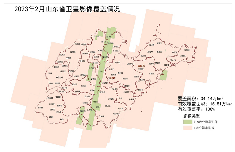 2023年2月份,共获取遥感影像34.14万平方千米,有效覆盖面积15.81万平方千米,有效覆盖率100%(全省陆域面积15.81万平方千米)。其中: