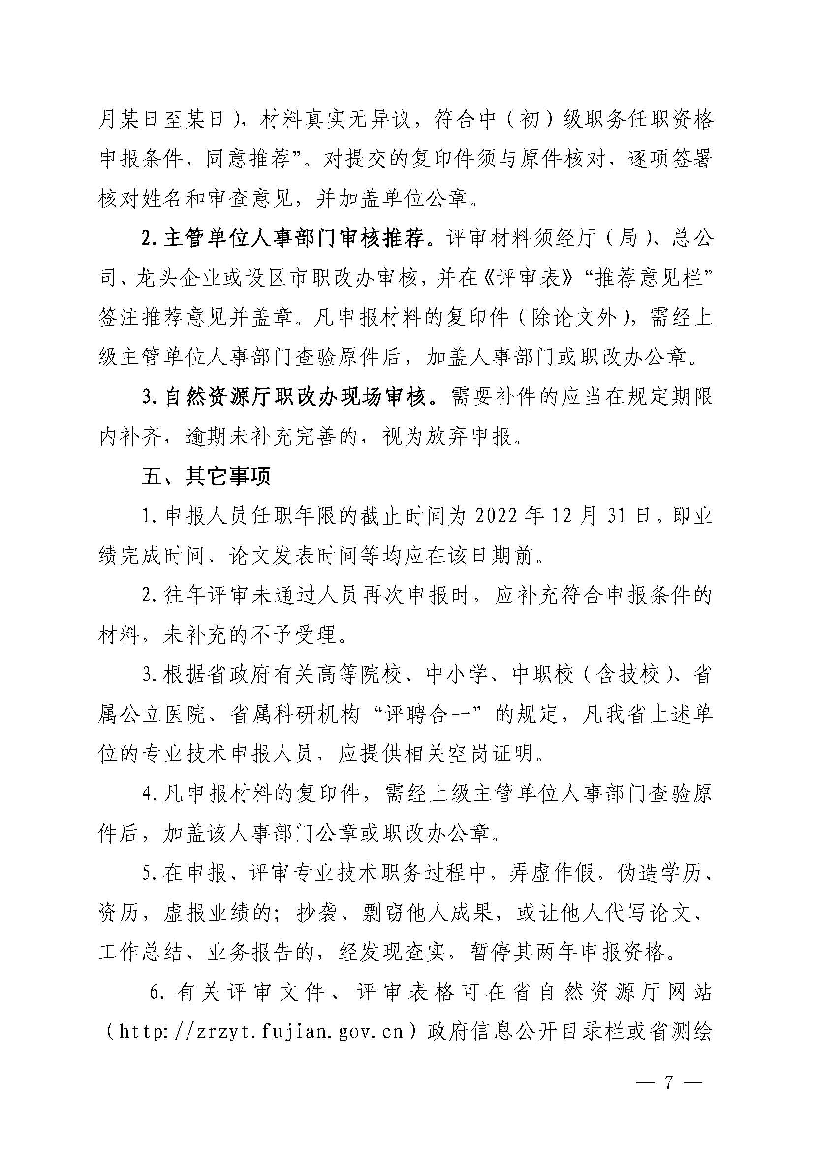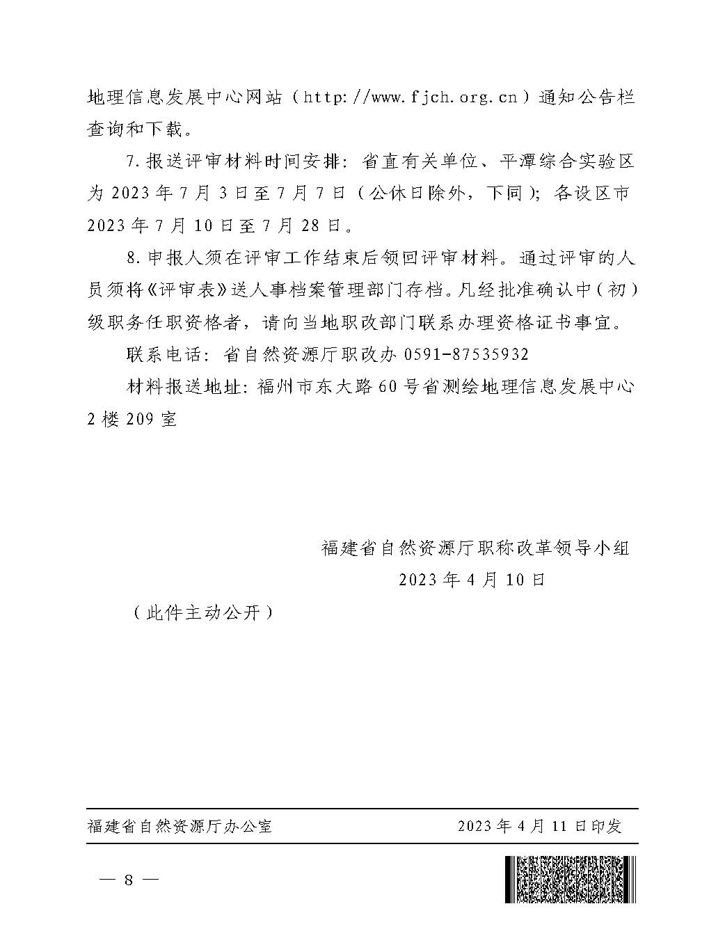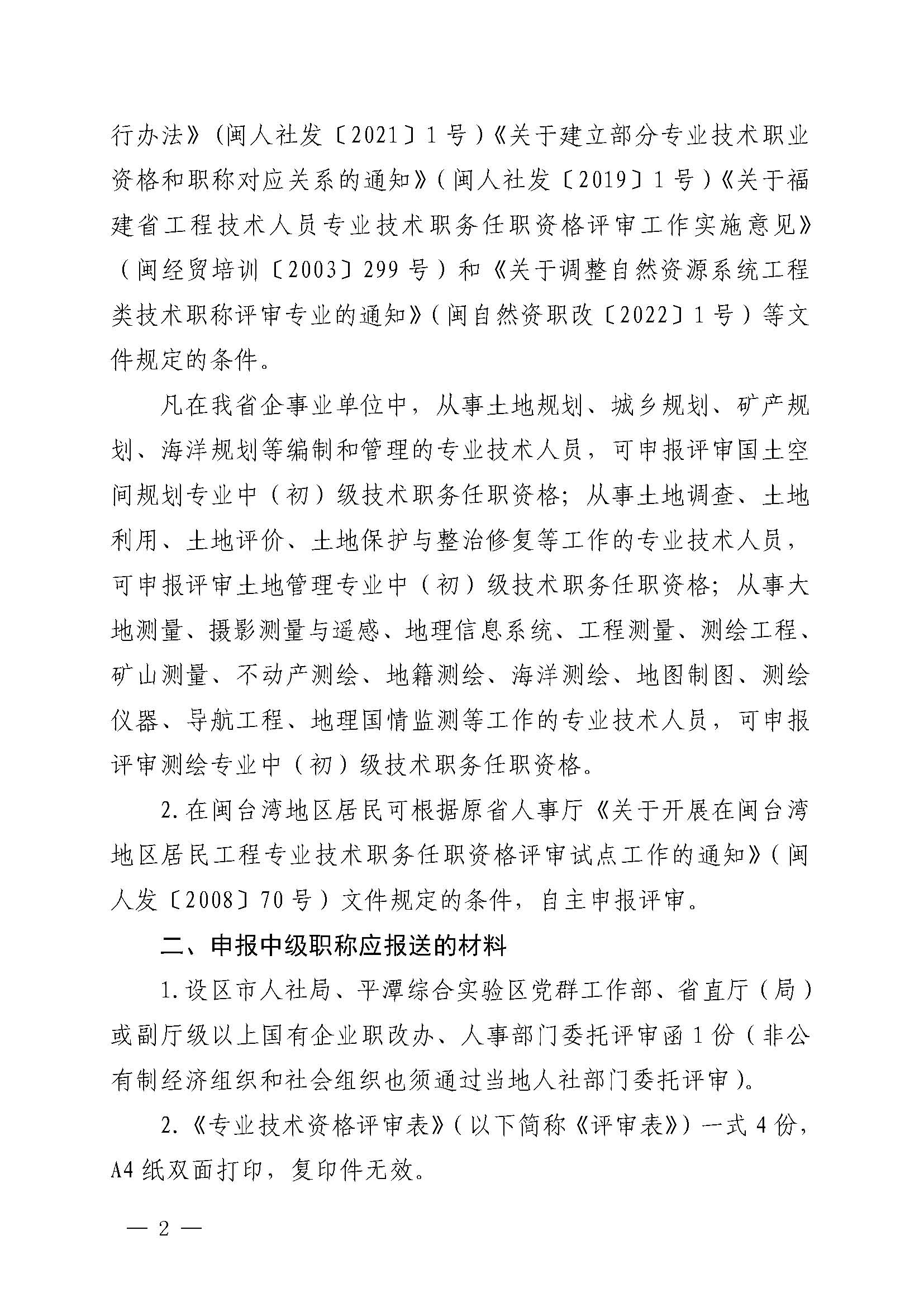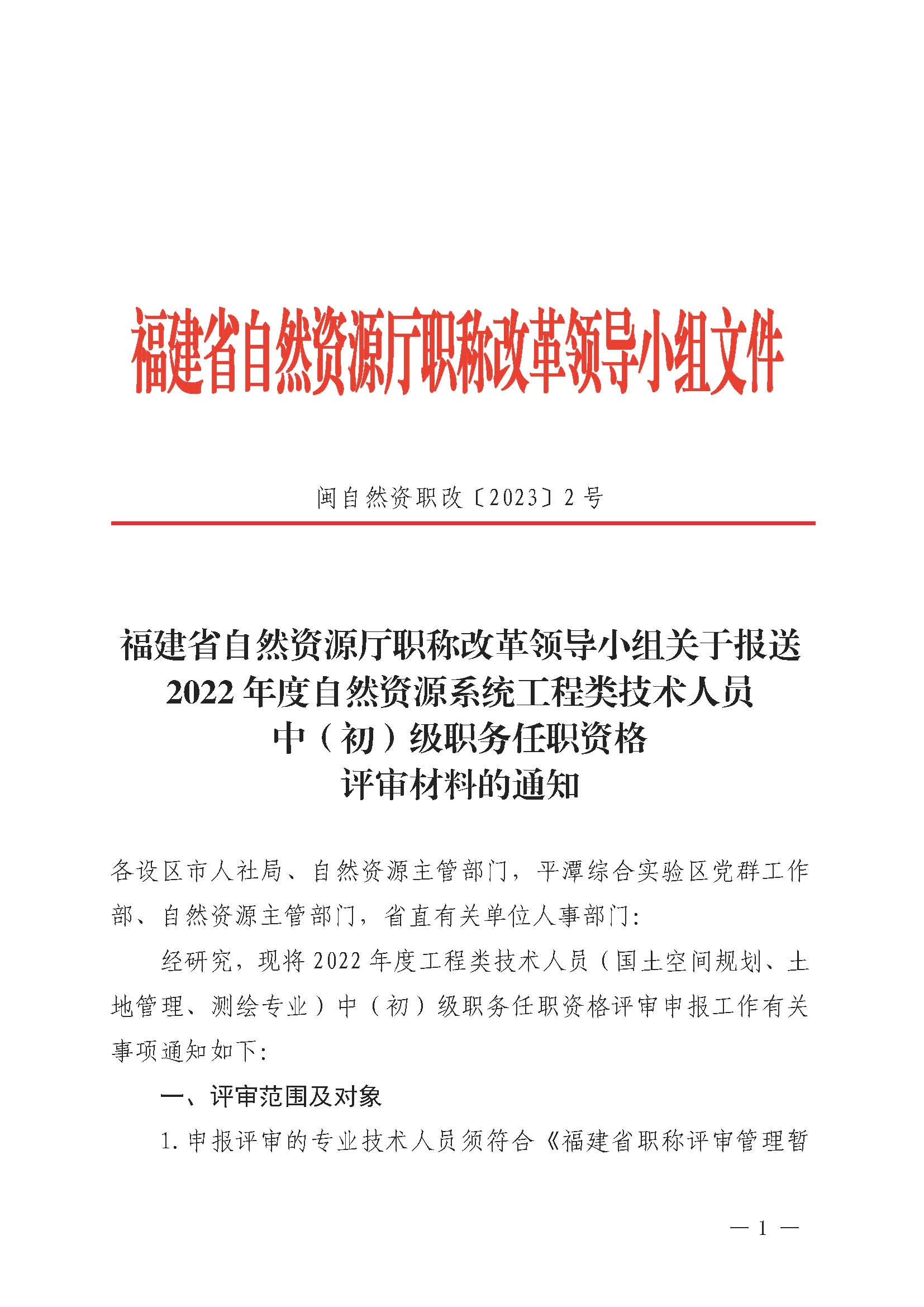 福建省自然资源厅职称改革领导小组关于报送2022年度自然资源系统工程类技术人员中(初)级职务任职资格评审材料的通知