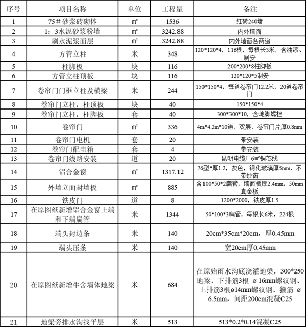 1.项目名称:云南省草地动物科学研究院马鸣基地B、C栋牛舍外墙体封闭改造工程