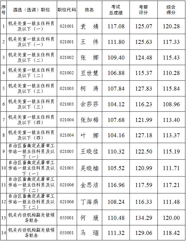2023年自治区农业农村厅机关公开遴选和公开选调公务员综合得分公告