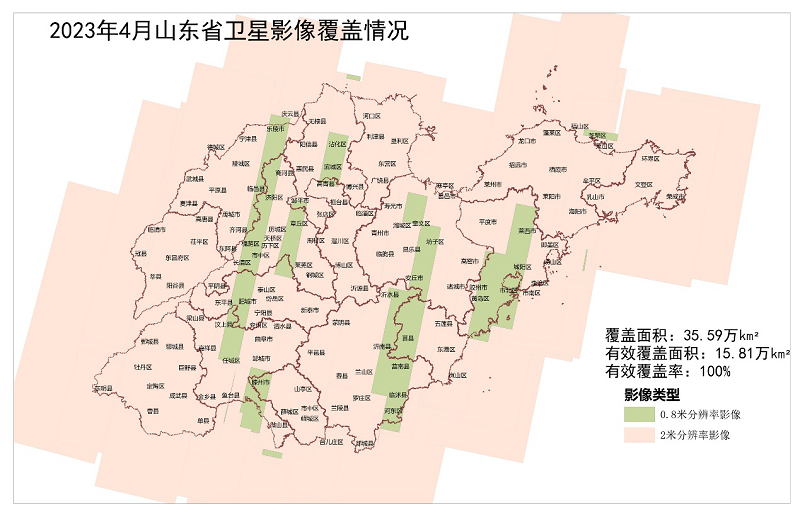 2023年4月份,共获取遥感影像35.59万平方千米,有效覆盖面积15.81万平方千米,有效覆盖率100%(全省陆域面积15.81万平方千米)。其中: