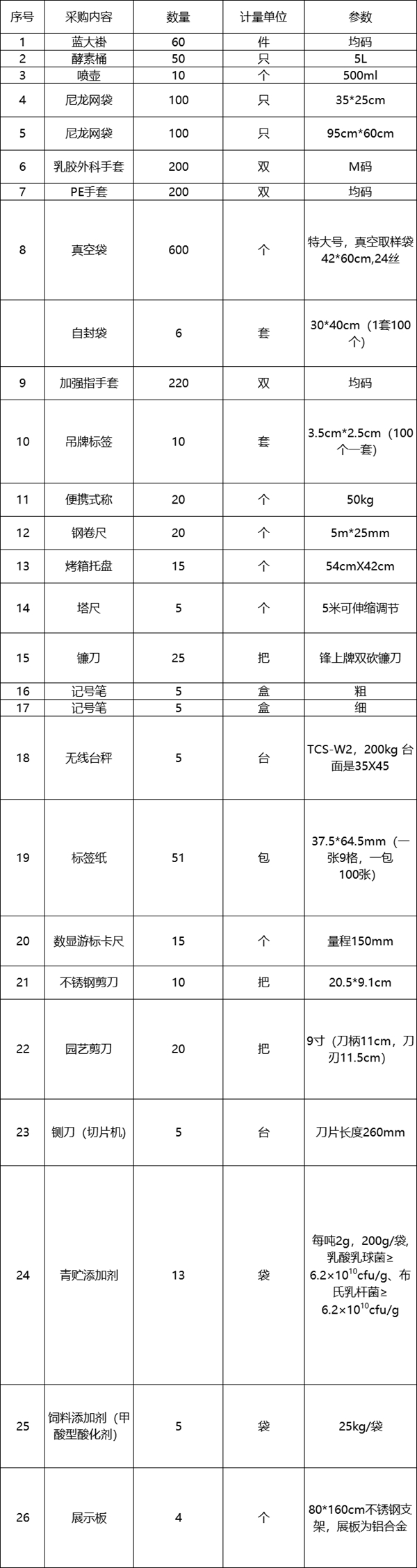 云南省饲草饲料工作站试验材料及青贮添加剂采购。