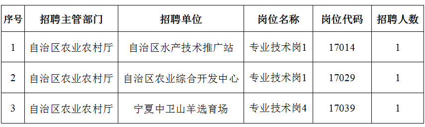 按照《宁夏回族自治区2023年事业单位公开招聘工作人员公告》,根据笔试情况,本着择优录取的原则,经自治区农业农村厅2023年事业单位公开招聘领导小组会议研究决定,取消未达到面试开考比例3个岗位的招聘计划,分别是: