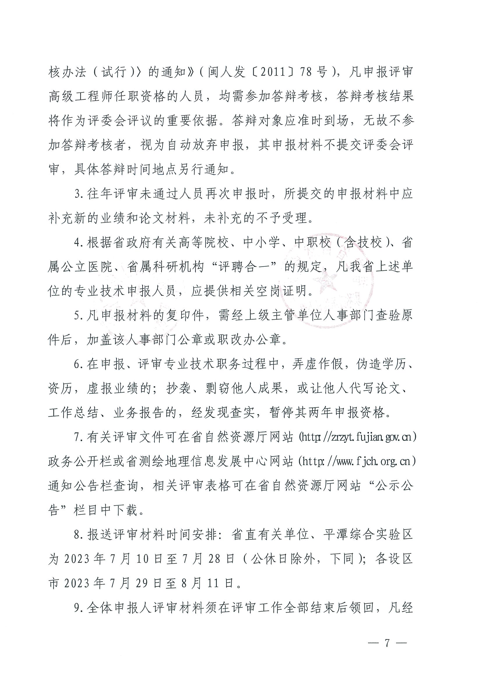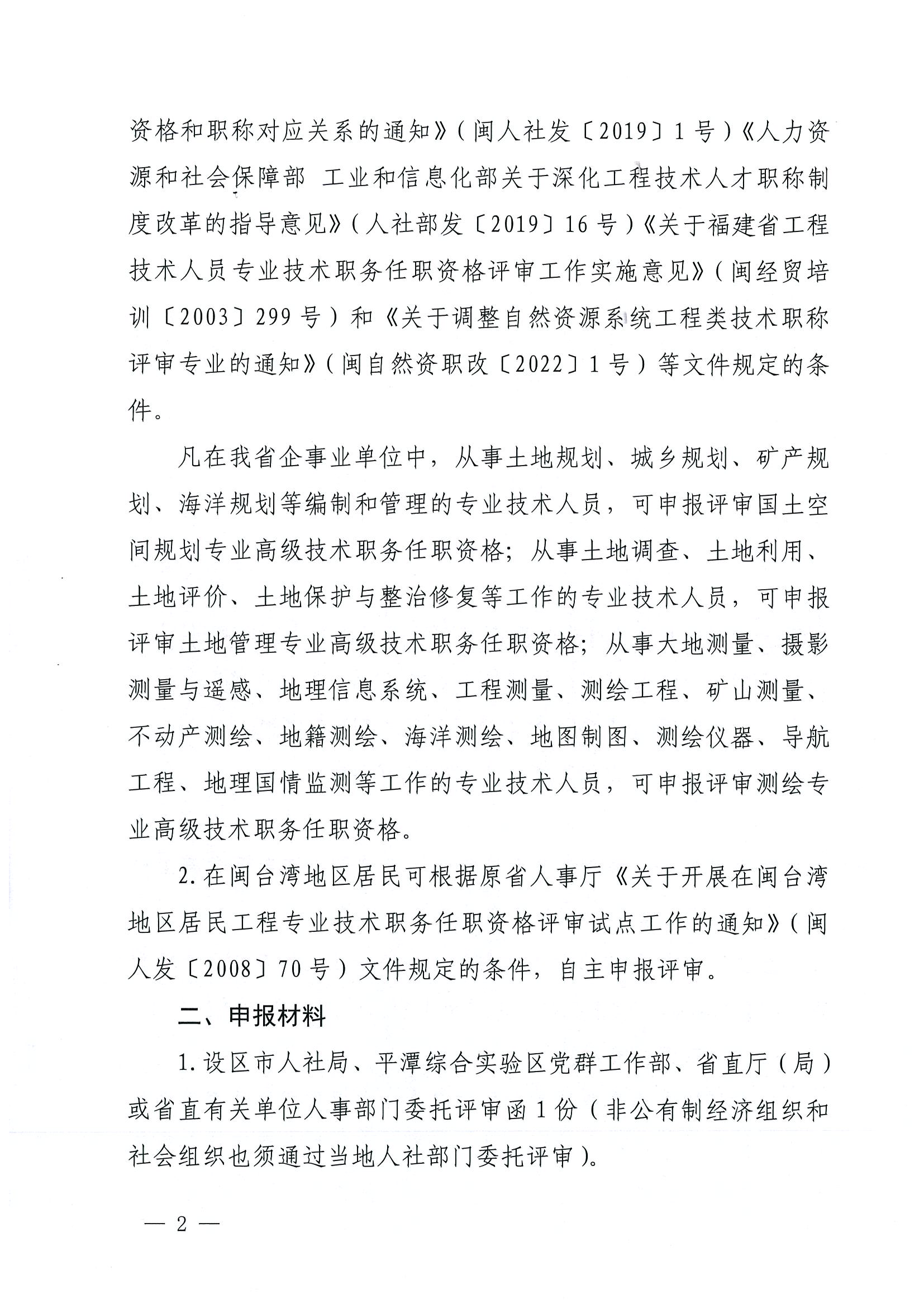 福建省自然资源厅职称改革领导小组福建省职称改革工作办公室关于报送2022年度自然资源系统工程类技术人员高级职务任职资格评审材料的通知