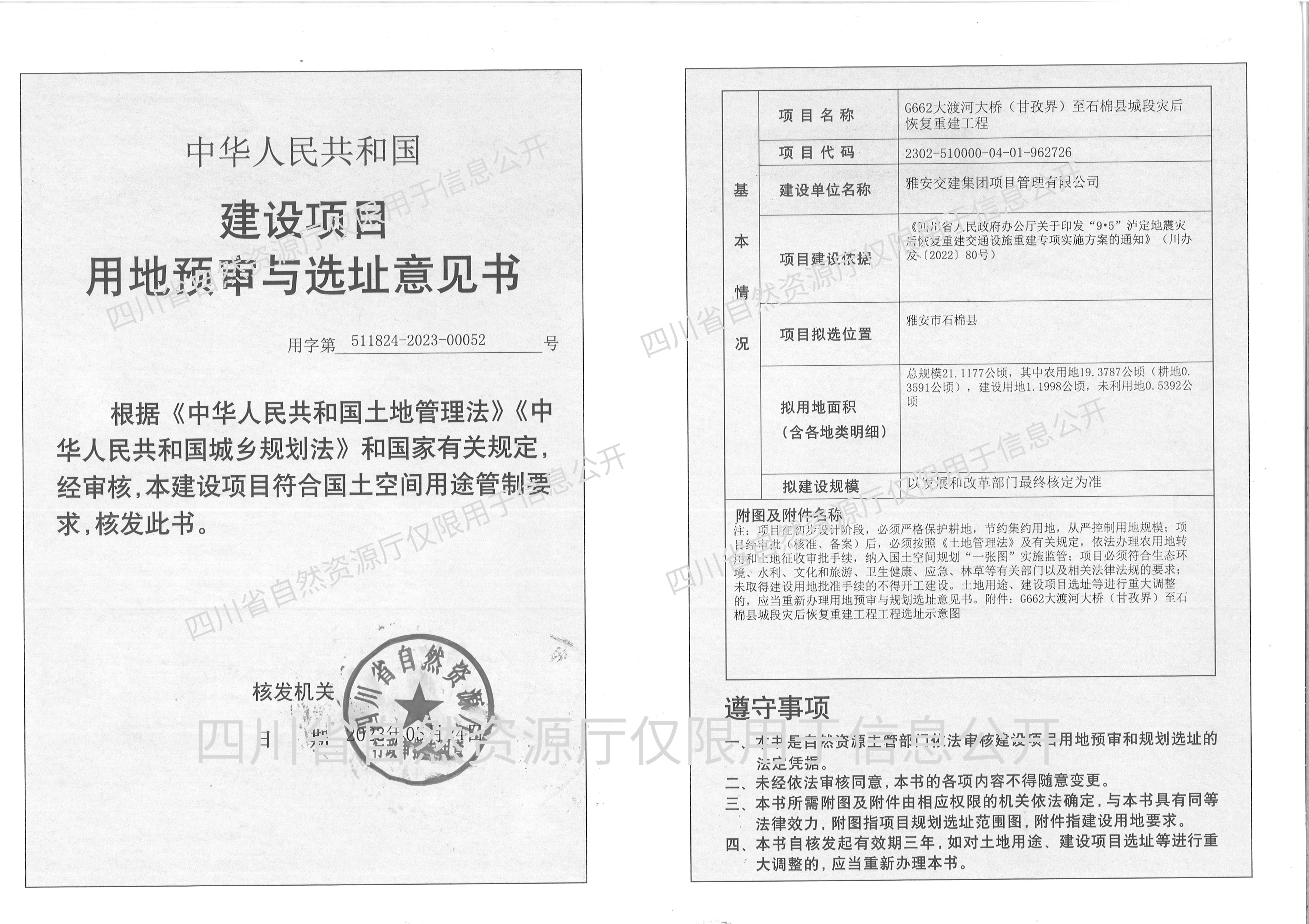 G662大渡河大桥(甘孜界)至石棉县城段灾后恢复重建工程