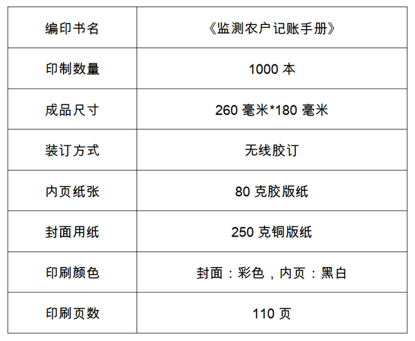 云南省农村经济经营管理站关于印制《监测农户记账手册》询价采购的公告