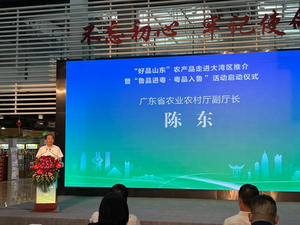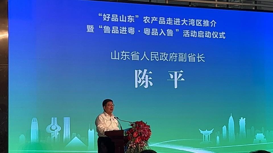 山东省人民政府副省长陈平在启动仪式上介绍:“山东作为全国第一农业大省,基础雄厚、品种丰富、品质优良,全省农林牧渔业总产值超过1.2万亿元,粮食产量连续9年稳定在千亿斤以上,蔬菜总产、肉蛋奶总产均居全国第一位,水果总产、水产品总产居全国第二,规模以上农产品加工企业过万家,农产品出口占全国五分之一,连续24年领跑全国。”陈平副省长表示,山东和广东都是全国农业大省、贸易大省,长期以来两省之间优势互补、交流频繁、合作密切,今后将以“鲁品进粤·粤品入鲁”活动为载体,持续加强两地深度协作关系,携手推动乡村全面振兴,共同为建设农业强国做出积极贡献。
