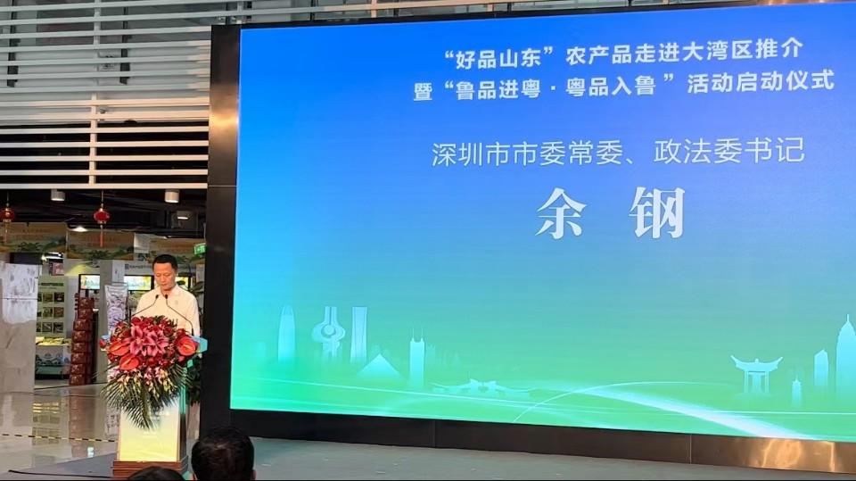 “本次’鲁品进粤·粤品入鲁’活动在深圳隆重启动,必将有效促进产销精准对接,更好推动两地产业发展、消费升级,是粤鲁情谊的见证与升华。”深圳市市委常委、政法委书记余钢满怀信心的表示,“我们将聚焦山东特色资源和产业基础,更好发挥深圳科技、市场、人才等优势,进一步加强省、市在城市供应保障、现代农业领域的交流合作,努力为全国区域协作高质量发展作出新的更大贡献!”