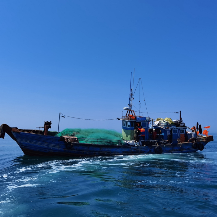 2023年5月11日,山东省海洋与渔业执法监察局海洋维权支队在86-4渔区(北纬36°15.4′,东经122°4.6′)查获三艘涉嫌涉渔“三无”船舶,分别刷写“鲁荣渔69168”“冀秦渔01641”“冀北新渔养01033”,该三艘船舶现扣押在荣成市赤山渔港。