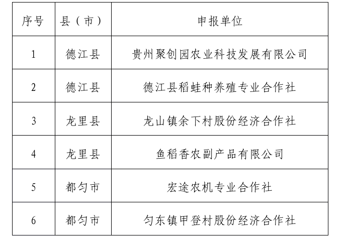根据《省农业农村厅办公室关于做好2021年推动渔业高质量发展项目申报工作的通知》要求,我厅组织开展了2023年稻渔综合种养示范点项目申报工作。经县(市、区)、市(州)逐级申报,我厅组织相关专家评审,龙里县等3个县(市)推荐的项目予以立项,现公示如下: