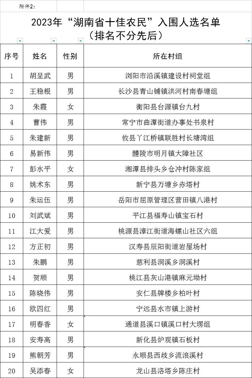 2.《2023年度“湖南省十佳农民”入围人选名单》