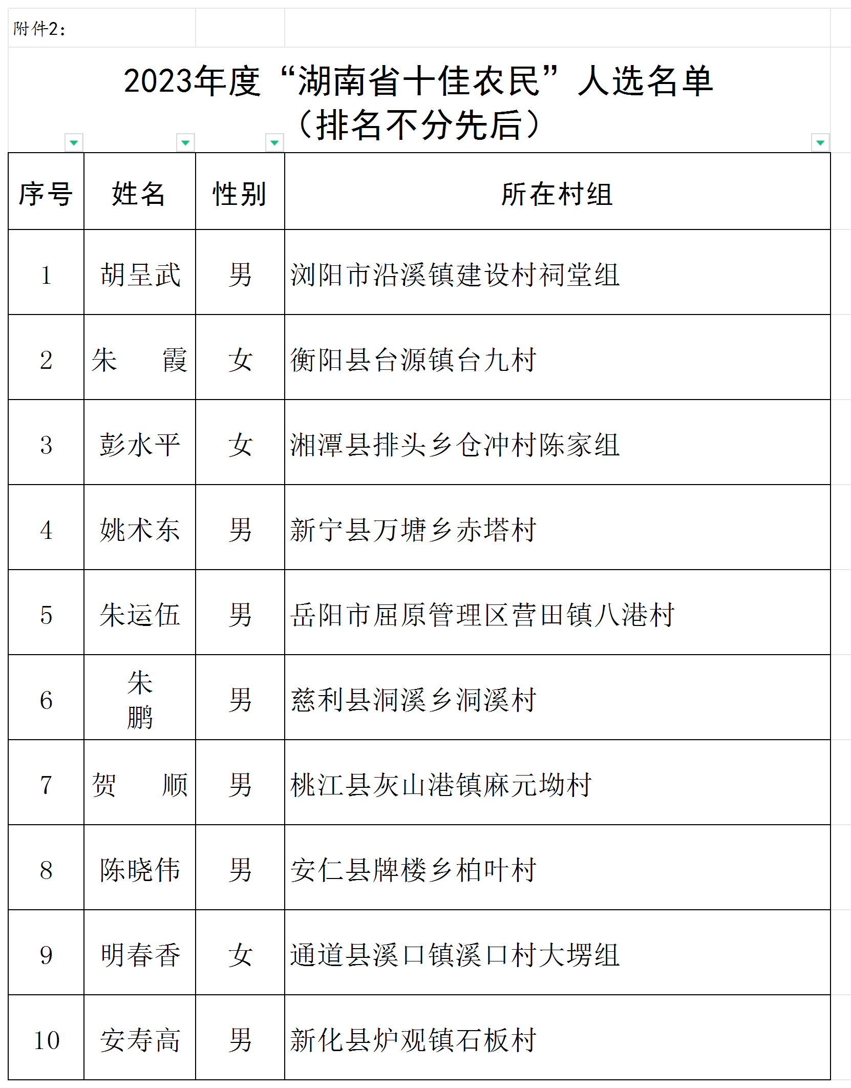 2、2023年度“湖南省十佳农民”名单