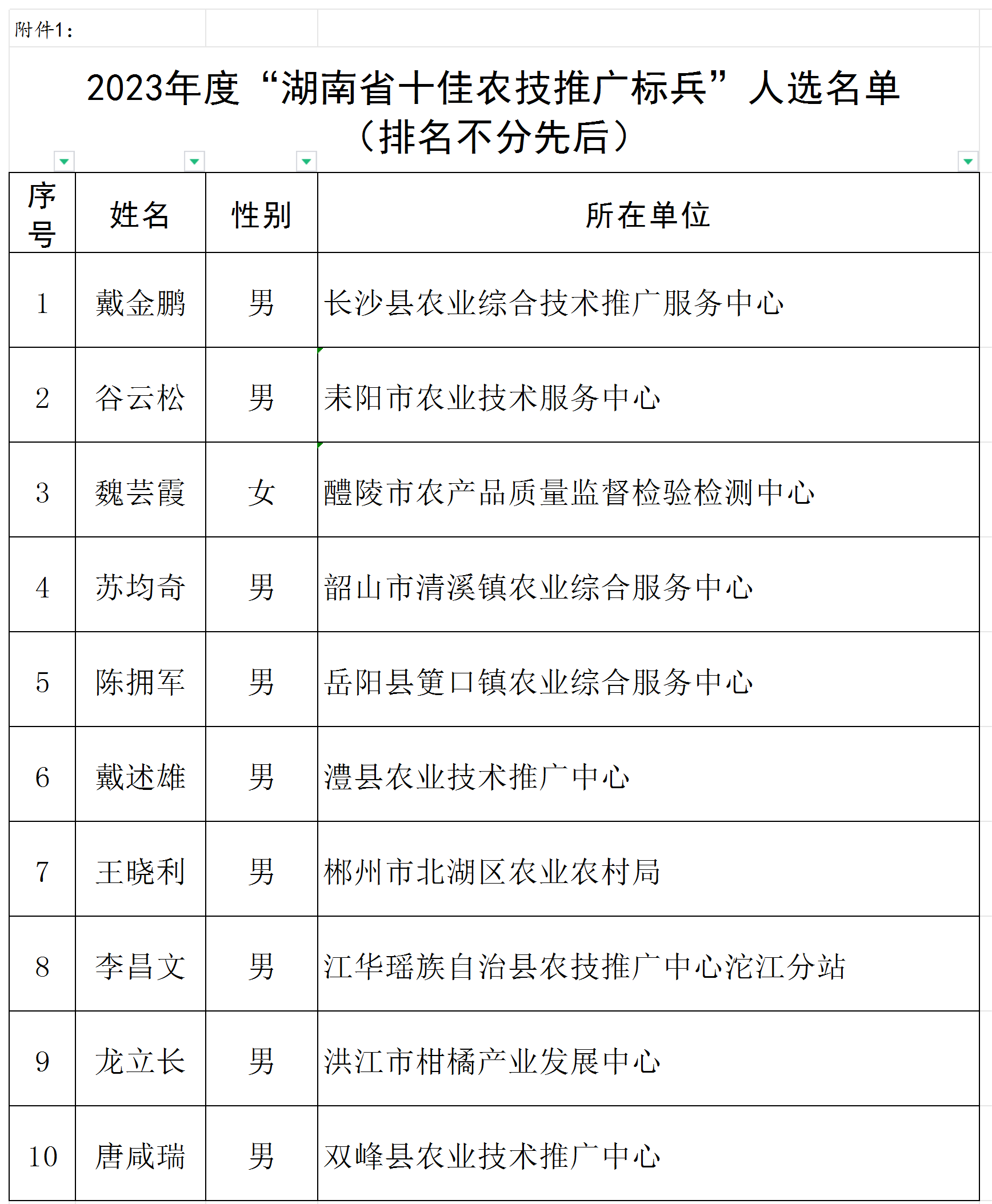 1、2023年度“湖南省十佳农技推广标兵”名单