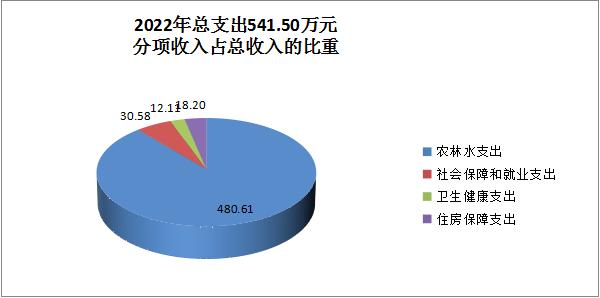 2022年总支出为541.50万元,比上年增加30.06万元,增长5.88%,主要原因为本年新增预算项目及原有项目资金增加,支出同比增加,具体情况如下: