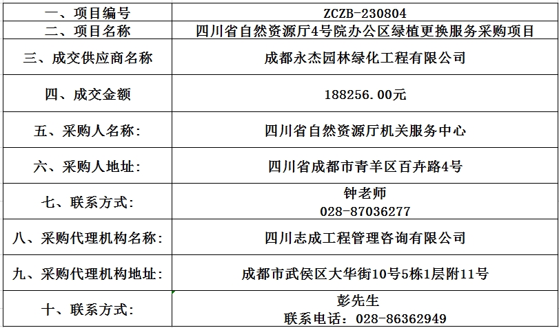 省厅4号院办公区绿植更换服务采购项目竞争性磋商结果公告