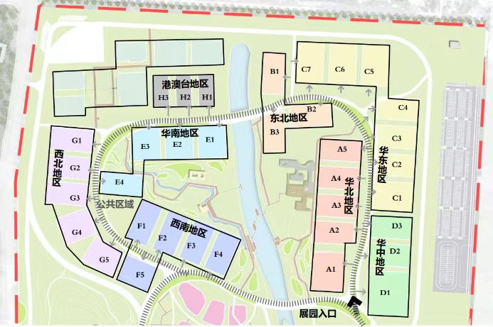 3.展园布展要注重特色花木、新优品种展示和各类应用方式等,要求花卉面积占展园总面积30%以上,总绿地面积占展园总面积60%以上。